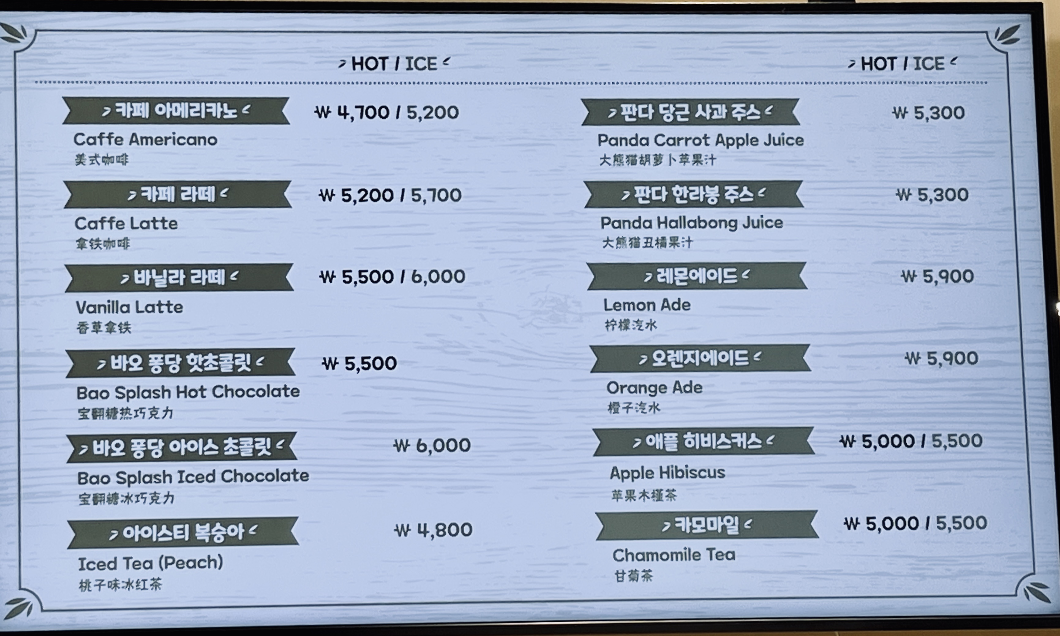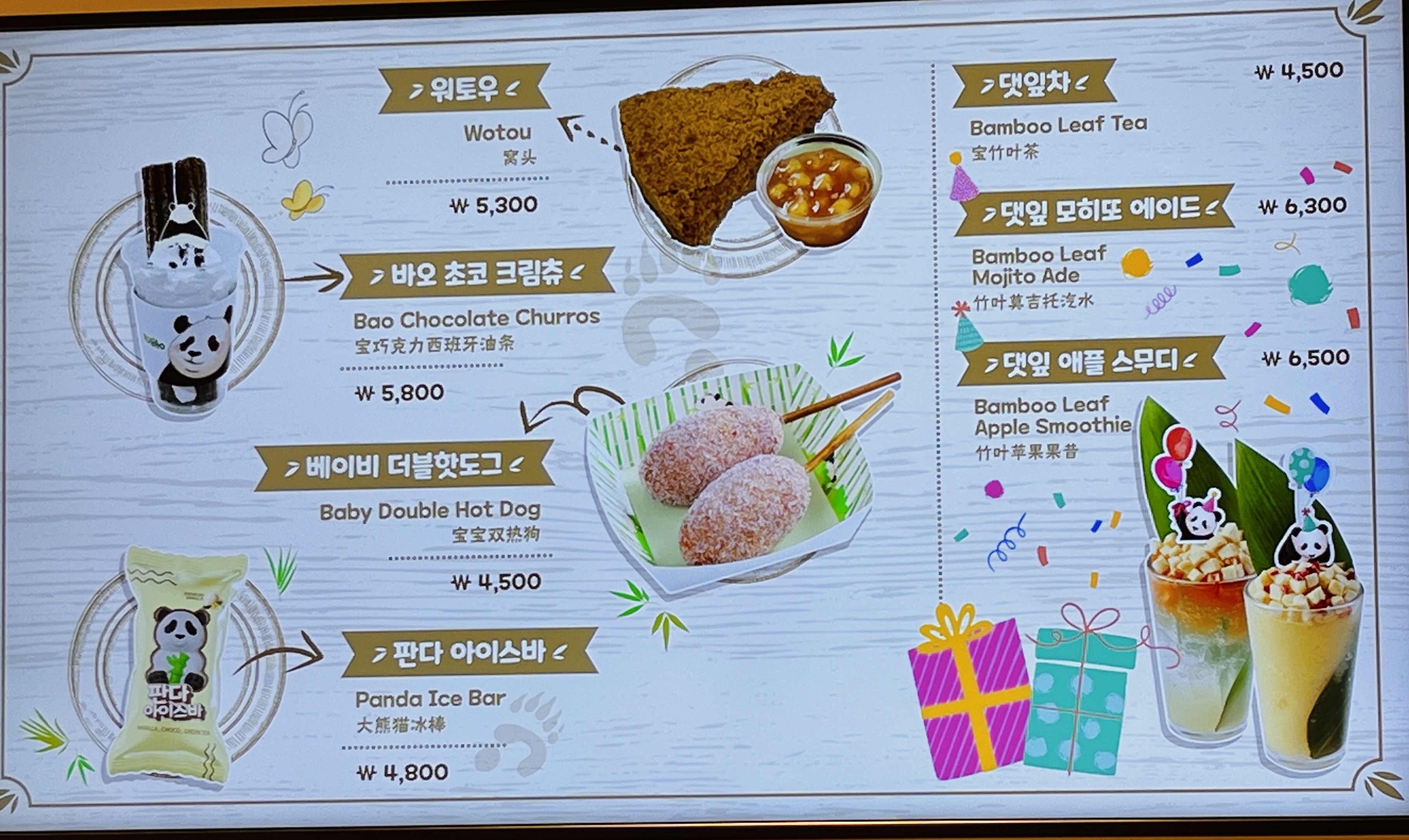 必須支持一下我們偉大愛女士的事業!!買了窩頭(워토우) & 熱的寶竹葉茶(댓이차)~~可內用或外帶,當持還帶著剛買好的餐點去拍寶家族的人生四格 (詳見下一個小標題),跟寶們同框超幸福的!