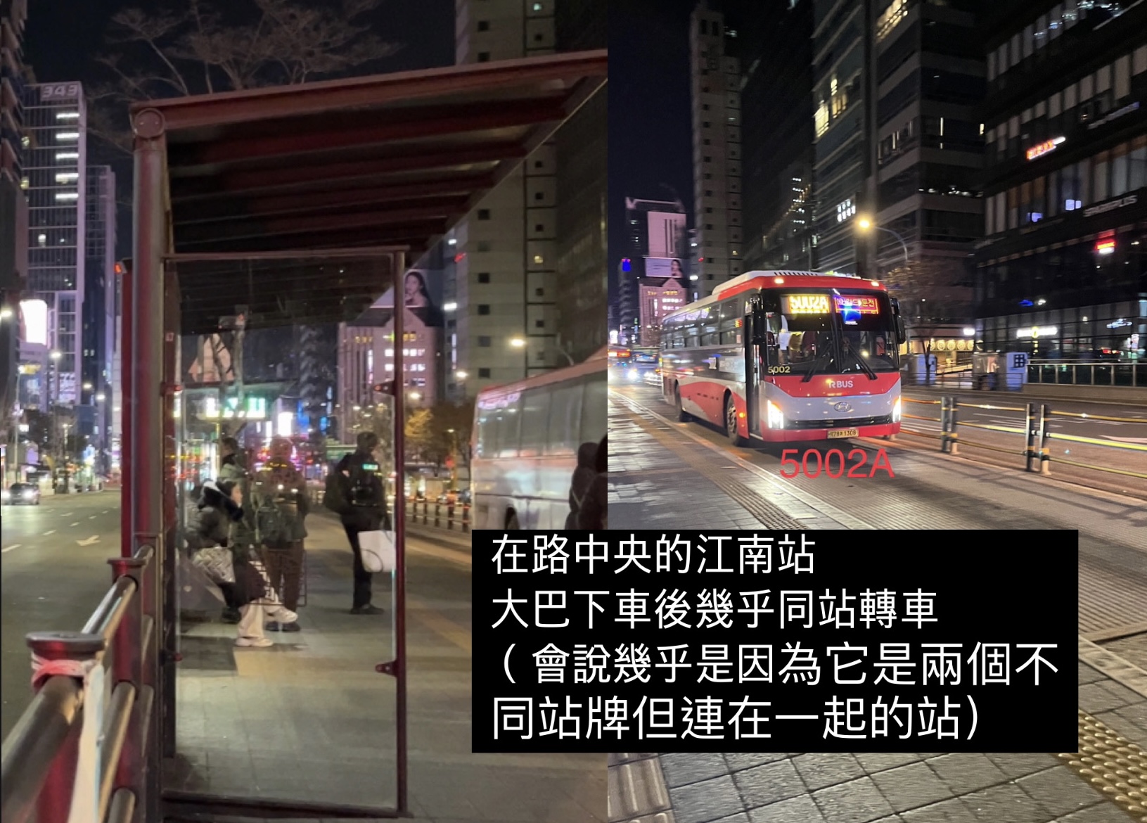 方法2. 冬天一大早去人少少,在地圖上「新盆唐線江南站신분당선강남역(購票機顯示江南站강남역,22009)」下車,幾乎直接原站轉車5002A~~